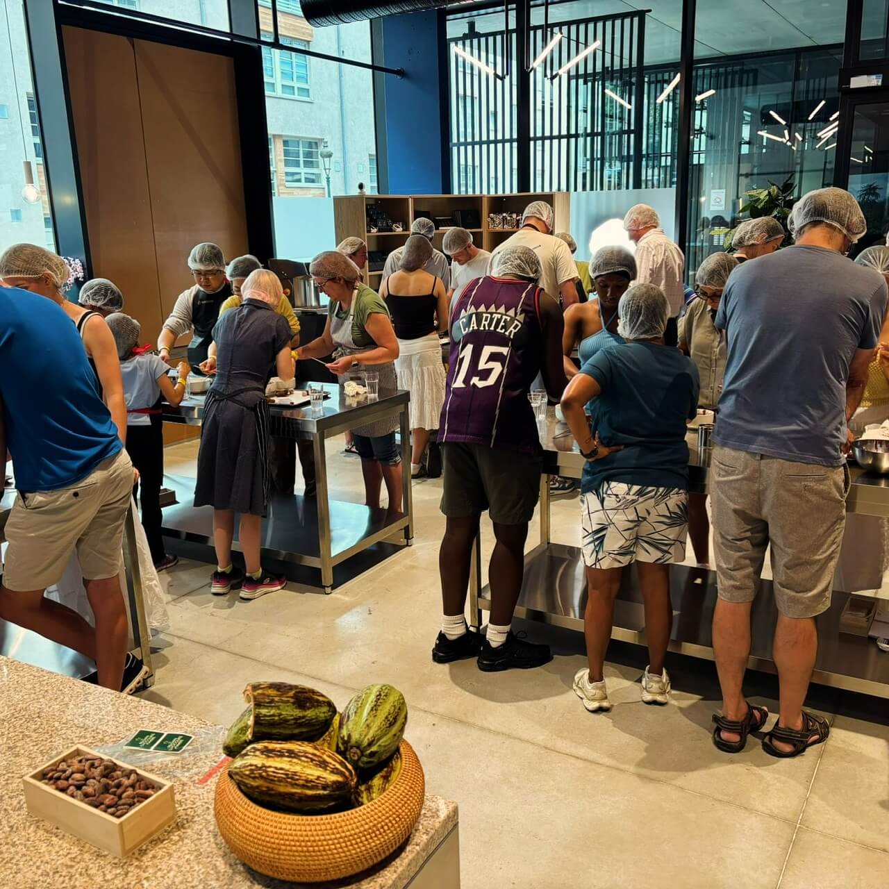 Il laboratorio è anche un'occasione unica per scambiare e interagire con i nostri cioccolatieri. Essi condivideranno le loro conoscenze e risponderanno alle vostre domande, guidandovi attraverso l'affascinante mondo del cacao.