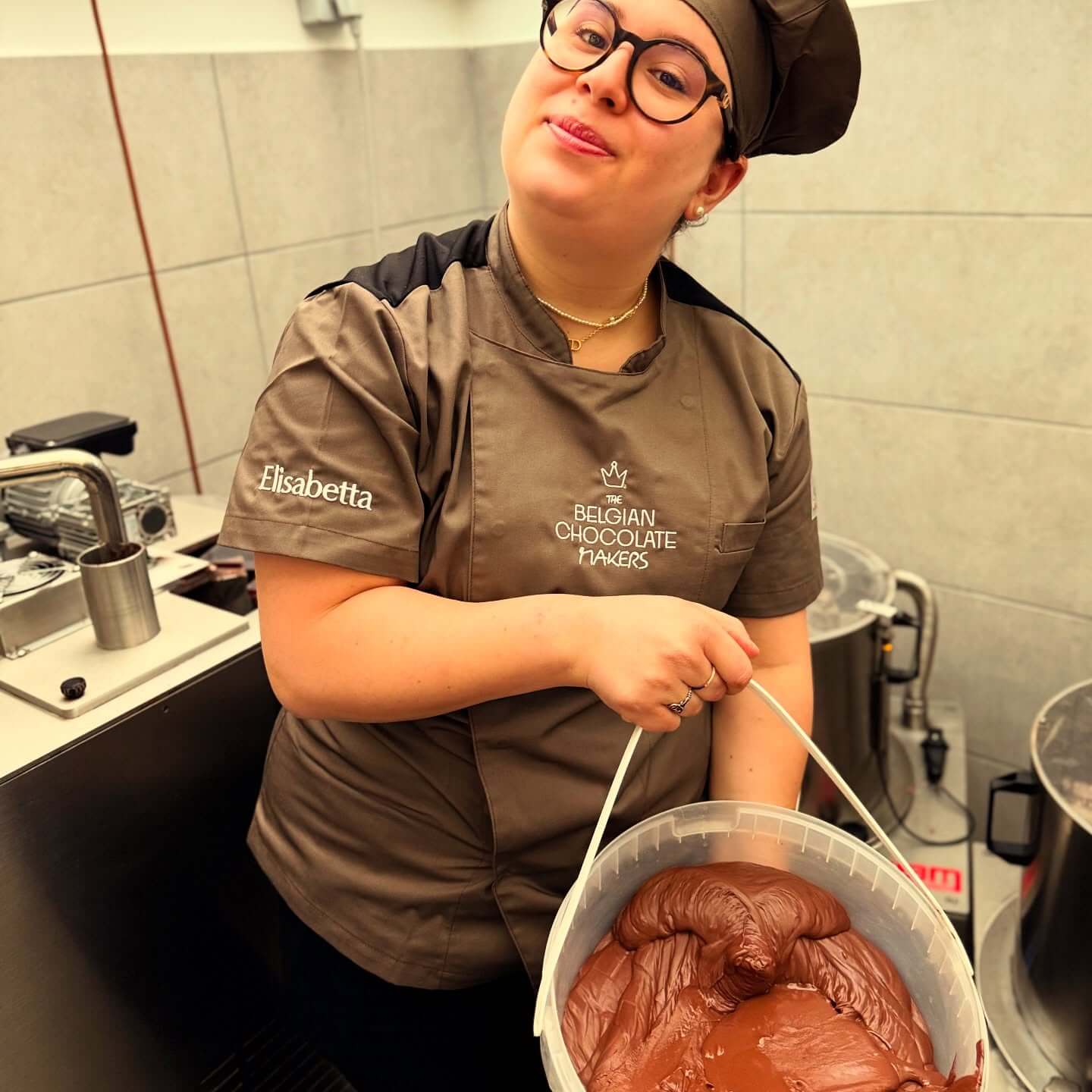 On busy days, especially during weekends, Elisabetta is joined by Patricia, another certified chocolate maker whose quirky sense of humor never fails to make our workshops even more enjoyable. Together, they create an atmosphere that is both professional and welcoming, turning every session into a unique and memorable experience.