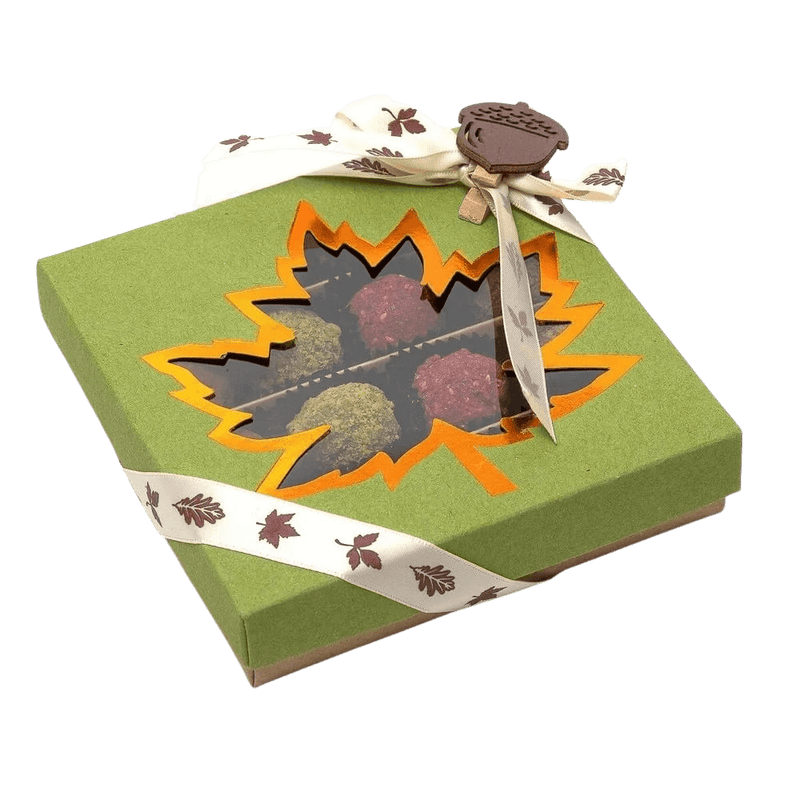 Mix di tartufi belgi autunnali in una scatola regalo verde