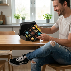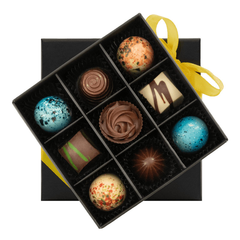 Concedetevi un momento di pura eleganza con la nostra scatola Tentazione nera , 9 squisite praline di cioccolato belga (135 g) lavorate a mano dal chicco alla tavoletta. Una lussuosa miscela di intensità scura e cremosa indulgenza, perfetta per un regalo o un piacere personale. 🍫✨