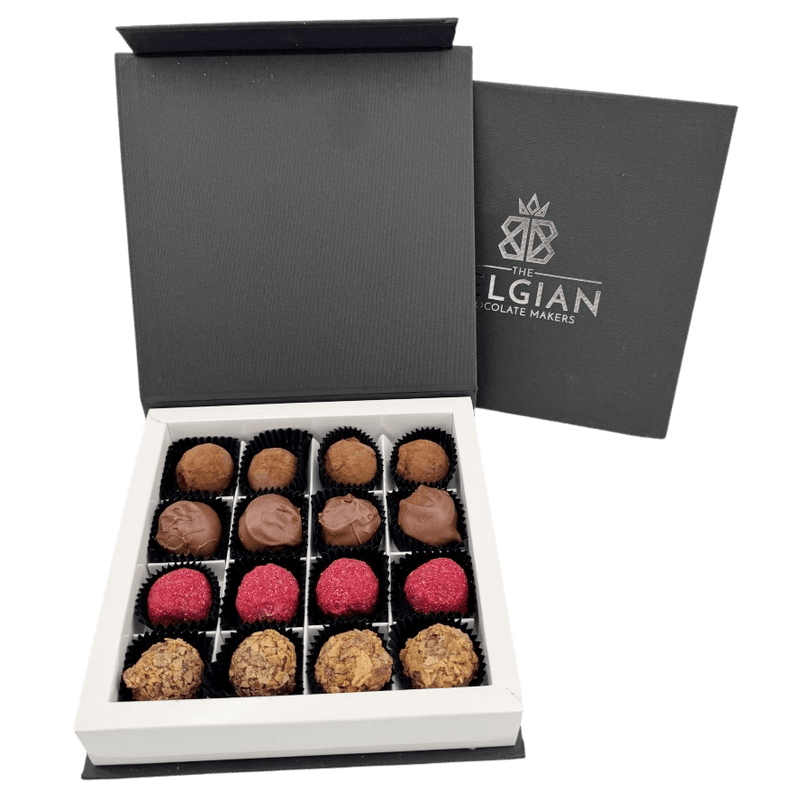Concedetevi una scatola di 16 tartufi di cioccolato belga in gusti misti, prodotti a Bruxelles con cacao etico. Un regalo raffinato o una delizia da condividere