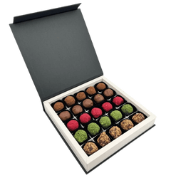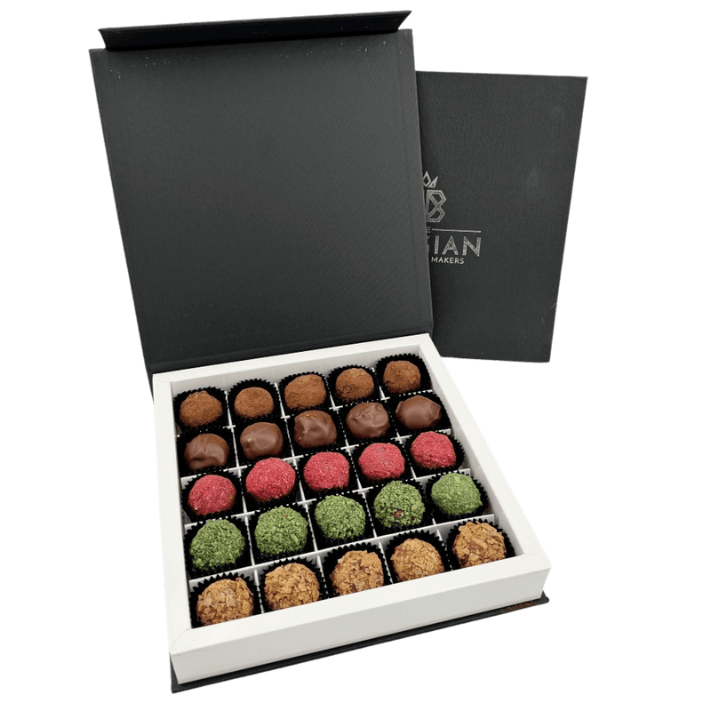 Concedetevi una scatola di 25 tartufi di cioccolato belga in gusti misti, prodotti a Bruxelles con cacao etico. Un regalo raffinato o una delizia da condividere