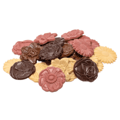 Godetevi un delizioso mix da 120 g di fiori di cioccolato artigianali, perfetti per essere regalati o per assaporare un cioccolato ricco e cremoso con un tocco floreale