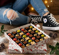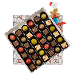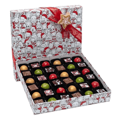 Celebrate le feste con la nostra confezione natalizia di 36 praline belghe, un elegante assortimento di cioccolatini artigianali realizzati con cacao di prima qualità, perfetti per essere regalati o per condividere dolci momenti di festa con i propri cari.