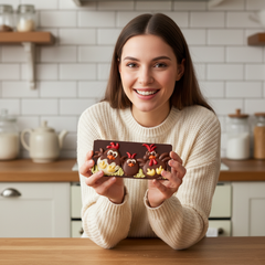 Scoprite la nostra tavoletta di uova di Pasqua al cioccolato fondente da 105 g, prodotta artigianalmente in Belgio con cacao ricco e intenso, una delizia giocosa ed elegante che celebra la gioia della Pasqua