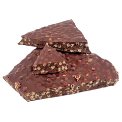 Tavolette spezzate di cioccolato fondente con riso soffiato, prodotte artigianalmente. Prodotte con cacao di prima qualità proveniente dalle Filippine, offrono un'esperienza gastronomica ricca, fruttata e ricca di nocciole