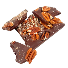 Tavolette spezzate di cioccolato fondente artigianale con noci pecan. Prodotte con cacao di prima qualità proveniente dalle Filippine, offrono un'esperienza gourmet ricca, fruttata e ricca di nocciole.