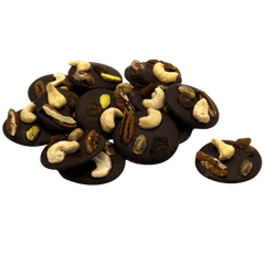 Ingredients: Pasta di cacao, zucchero, burro di cacao, lecitina di girasole, anacardi, pistacchi, noci pecan, uvetta.