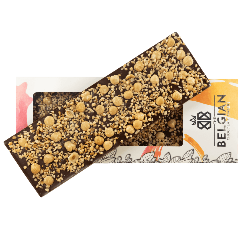 Concedetevi la nostra tavoletta di cioccolato fondente Fantasy da 375 g, ricca di croccanti pezzetti di nocciola Piemonte. Una creazione belga oversize, perfetta per essere regalata o condivisa