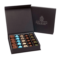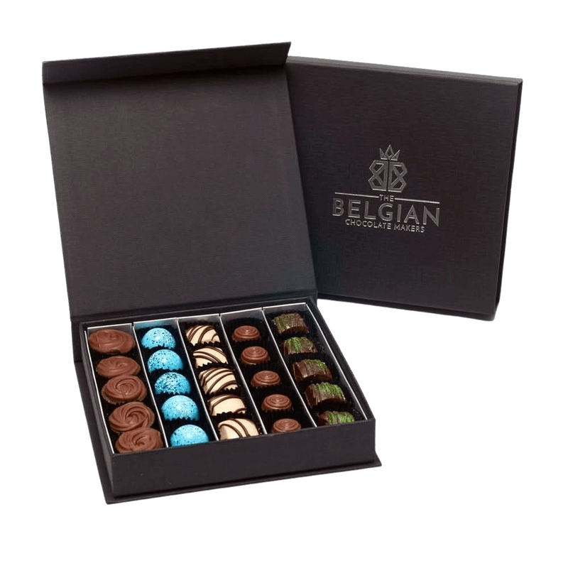 Concedetevi una lussuosa confezione di 25 praline di cioccolato belga dai gusti misti, realizzate a mano a Bruxelles con cacao etico. Un regalo raffinato o una delizia per i buongustai.