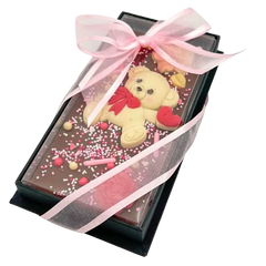 Condividete la dolcezza con la nostra barretta di cioccolato al latte love bear 120g, realizzata a mano a Bruxelles da cioccolatieri artigianali certificati. Realizzata con cacao ricco, etico e tracciabile, è un affascinante regalo di cioccolato belga per una persona speciale.