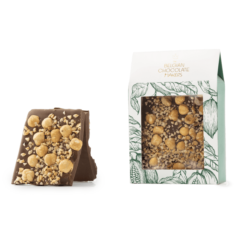 Tavolette spezzate di cioccolato al latte con nocciole