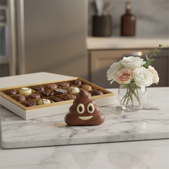 Fatevi una risata con il nostro lecca-lecca al cioccolato al latte emoji cacca 30g, un divertente dolcetto belga fatto di cioccolato al latte morbido e cremoso. 💩🍭 Giocoso, delizioso e in grado di far sorridere tutti!