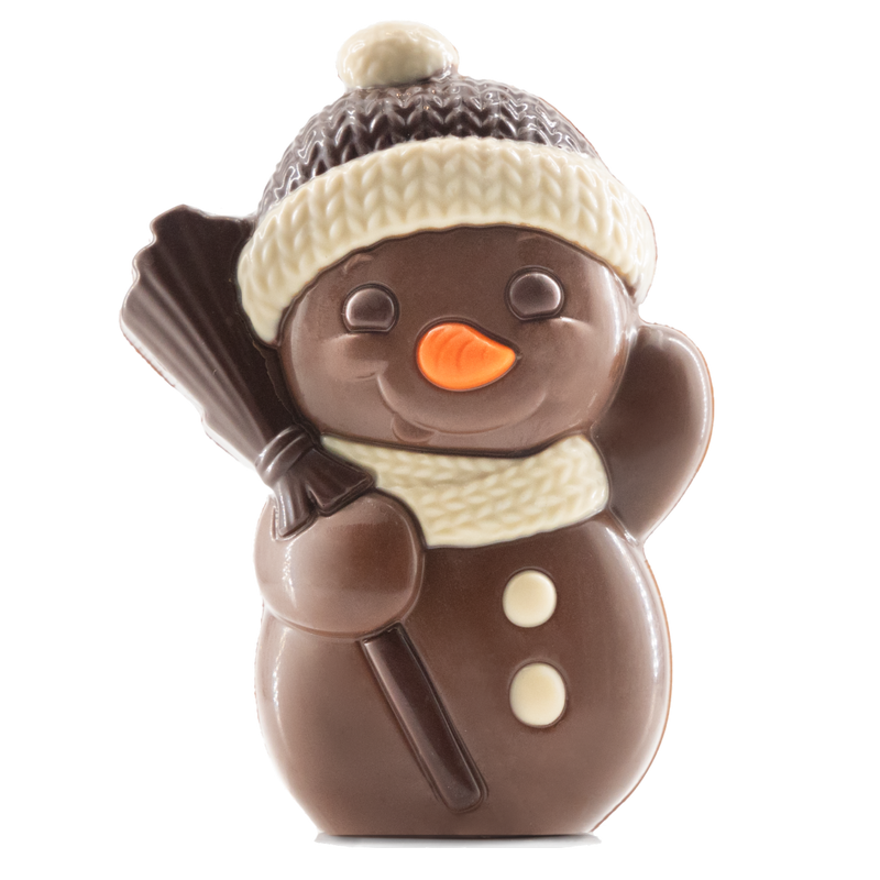 Ecco il nostro piccolo pupazzo di neve al latte da 150 g, una gioiosa creazione belga realizzata con cioccolato al latte morbido e cremoso. ₊Festoso, affascinante e perfetto per essere regalato, porta la magia dell'inverno in ogni celebrazione.