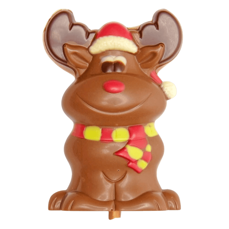 Simpatico e delizioso lecca-lecca natalizio di cioccolato al latte con renna, fatto a mano a Bruxelles con cioccolato belga di prima qualità. Una delizia festosa per i bambini e gli amanti del cioccolato!