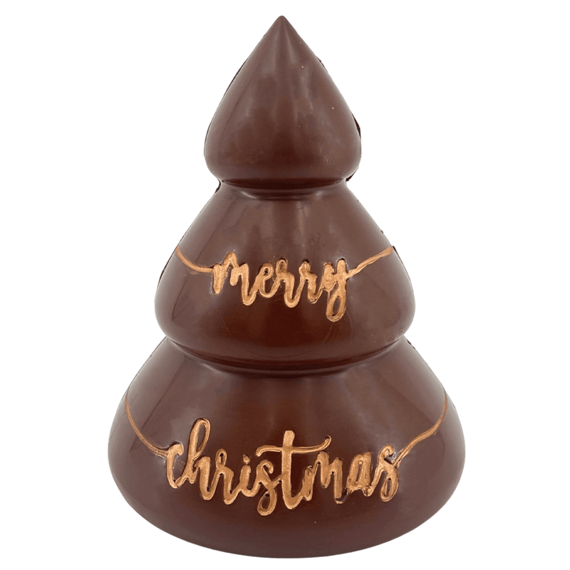 Deliziatevi con il nostro albero di cioccolato al latte belga "Merry Christmas" (280 g), splendidamente incartato e pronto a condividere la gioia delle feste, perfetto come regalo o centrotavola in questo periodo natalizio
