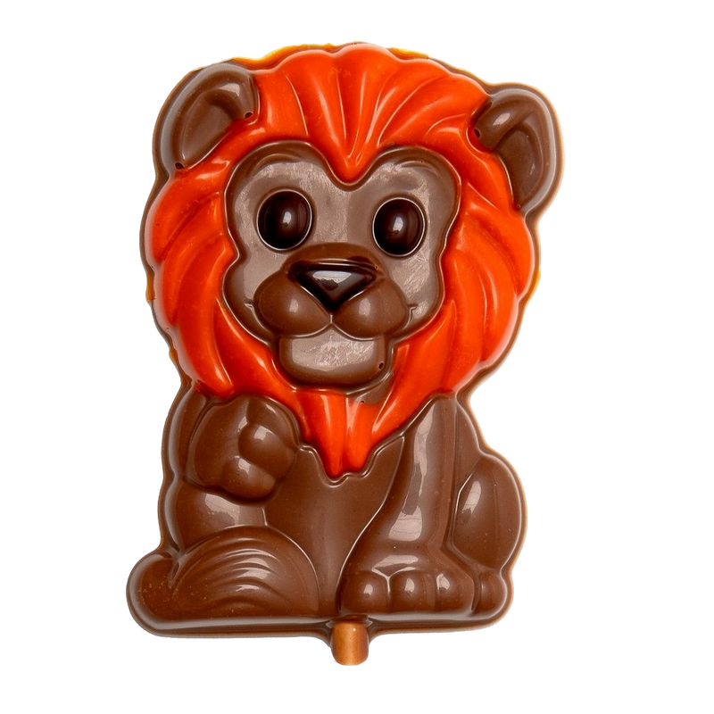 Ruggite di gioia con il nostro lecca-lecca di cioccolato al latte con criniera d'arancia (25g), prodotto artigianalmente a Bruxelles con cioccolato etico da fagiolo a barretta. Una divertente e cremosa leccornia belga per i bambini e per gli appassionati di cioccolato.