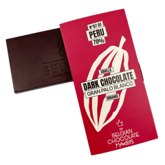 Perù Gran Palo Blanco 70% di cioccolato fondente, prodotto artigianalmente a Bruxelles con cacao monorigine. Una tavoletta rara dalle delicate note floreali e dalla raffinata complessità.