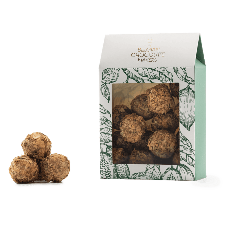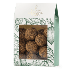 Assaporate la nostra confezione da 160 g di tartufi di cioccolato belga con feuilletine. Prodotti a mano a Bruxelles, combinano il cacao morbido con fiocchi caramellati per una croccantezza davvero indulgente