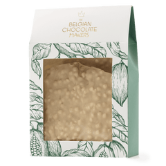 Scoprite la nostra tavoletta artigianale di cioccolato bianco spezzato con riso soffiato, lavorata a mano per ottenere una dolcezza cremosa e una croccantezza leggera in ogni morso.