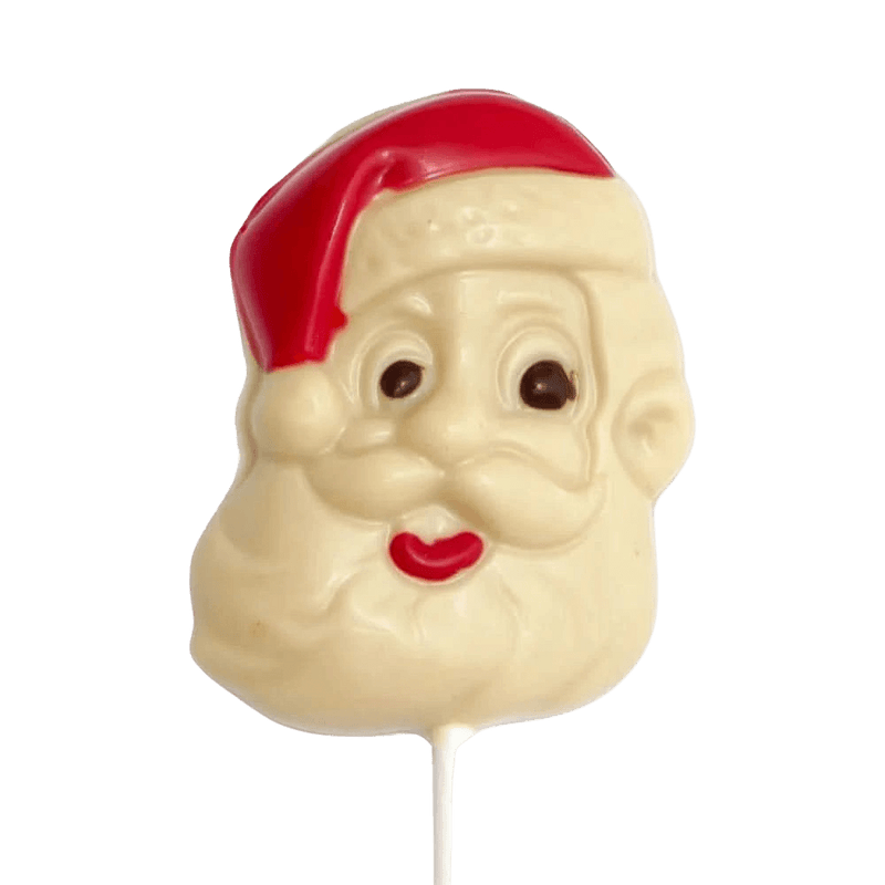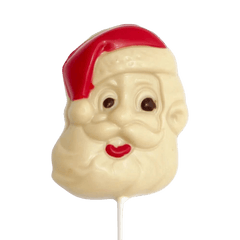 Festoso lecca-lecca di Babbo Natale al cioccolato bianco, realizzato a mano a Bruxelles con cioccolato belga di prima qualità. Un gioioso dolcetto natalizio per i bambini e per gli amanti del cioccolato.