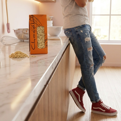 Deliziatevi con la dolcezza cremosa del nostro cioccolato bianco da 200 g, prodotto a Bruxelles con puro burro di cacao per un'esperienza di cioccolata calda liscia e lussuosa.